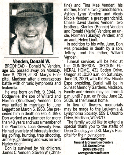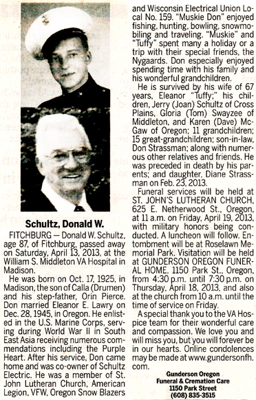 Schultz, Donald W. “Muskie Don” “Muskie” Obit Cemetery