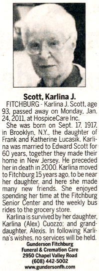 Scott, Karlina J. (nee Lucasik) Obit