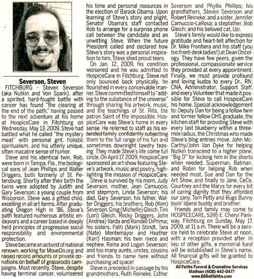 Severson, Steven “Nutkin” “Von Spark” Obit