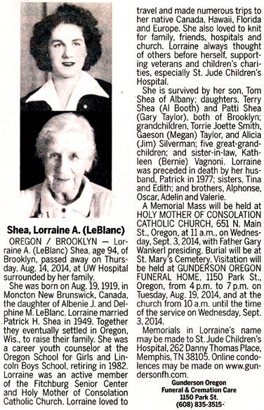 Shea, Lorraine A. (nee LeBlanc) Obit Cemetery