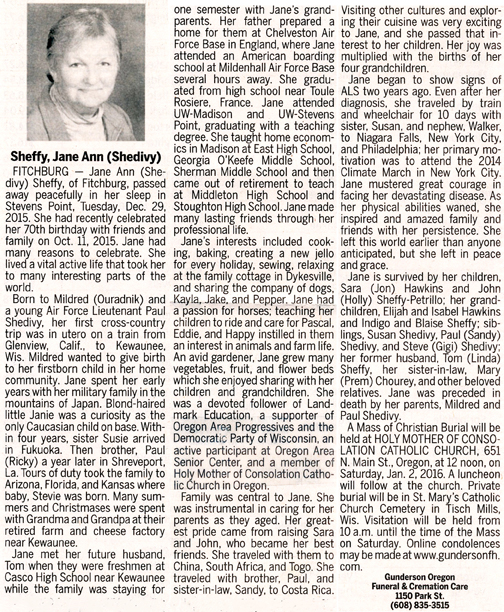 Sheffy, Jane Ann (nee Shedivy) Obit Cemetery
