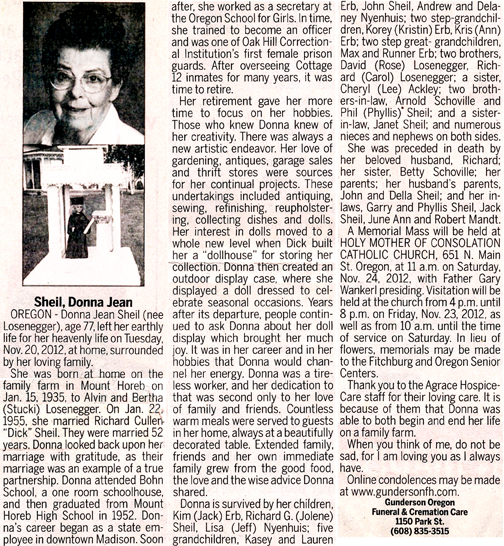 Sheil, Donna J. (nee Losenegger) Obit