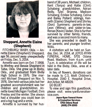 Sheppard, Annette Elaine (nee Shepherd) Obit
