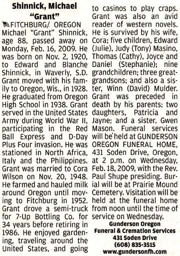 Shinnick, Michael “Grant” Obit Cemetery