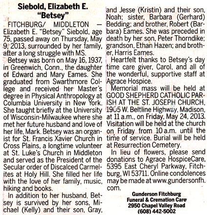 Siebold, Elizabeth E. “Betsey” (nee Eames) Obit Cemetery