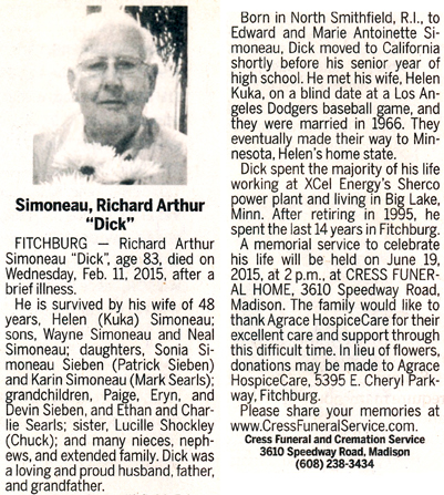 Simoneau, Richard Arthur “Dick” Obit