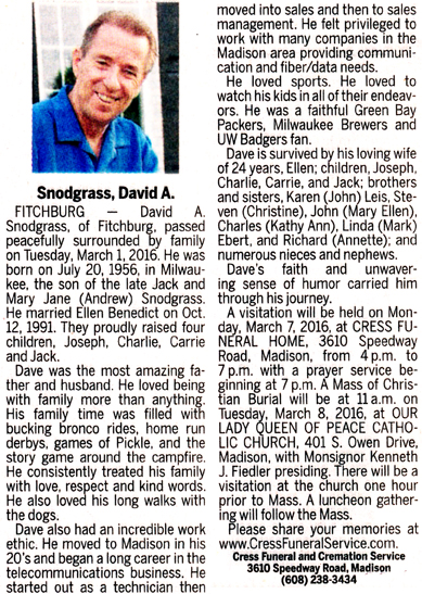 Wisnefske, David D. Obit Cemetery