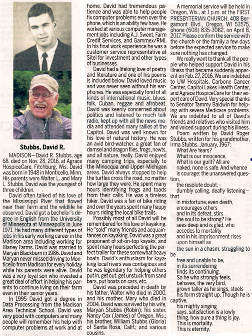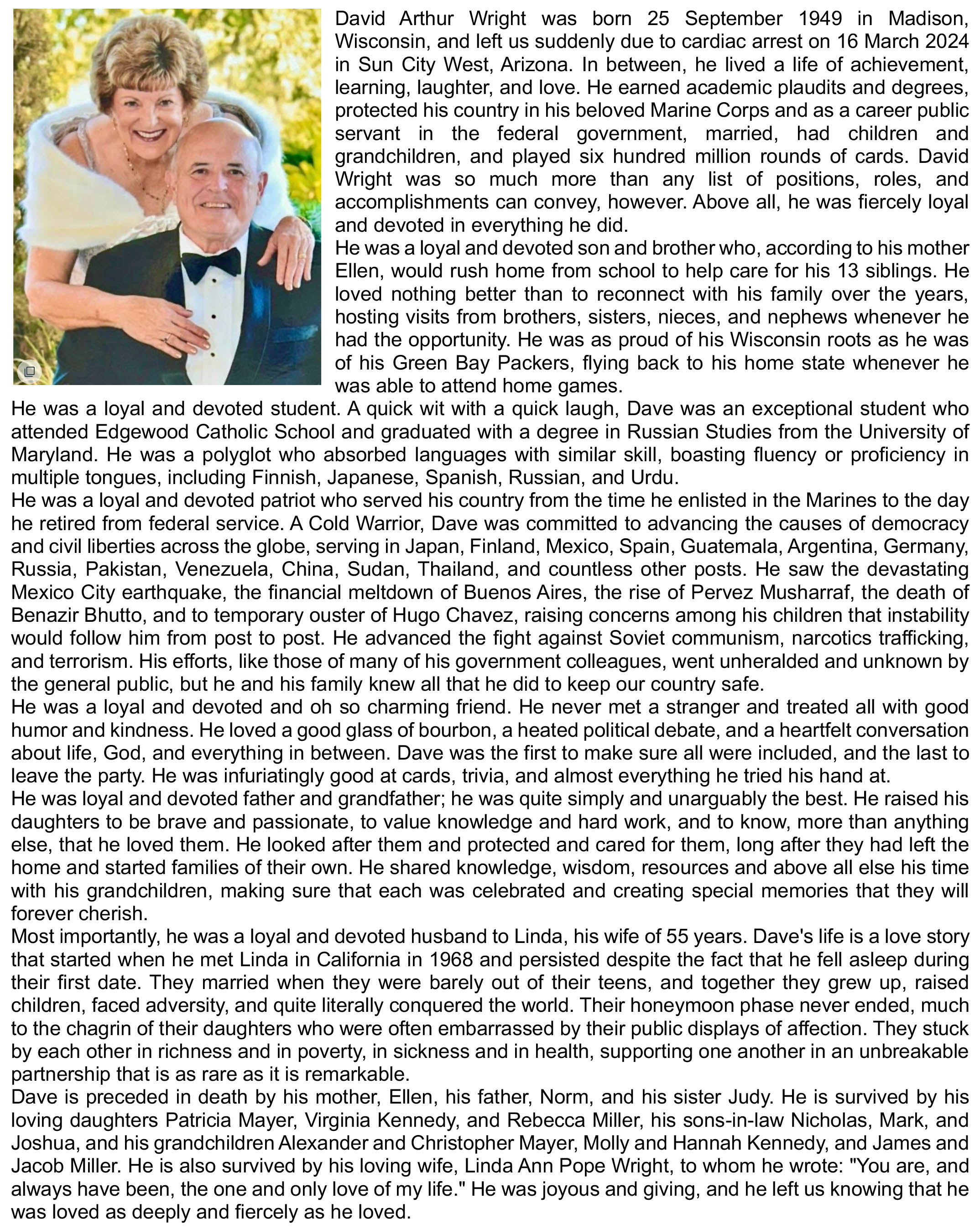 Wright, David Arthur Obit Cemetery