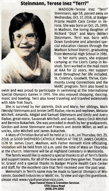 Wackman, Susan Althea (nee Terwilliger) Obit
