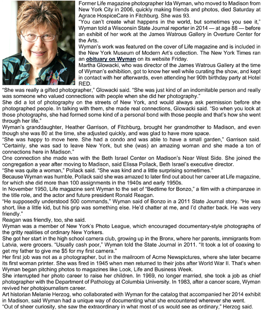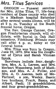Wyman, Ida Dora Obit 1 Obit 2