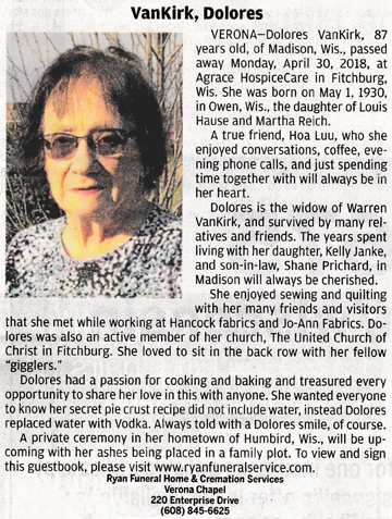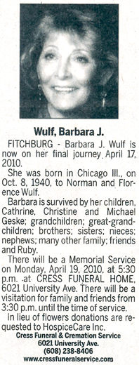 Wulf, Barbara J. Obit Cemetery
