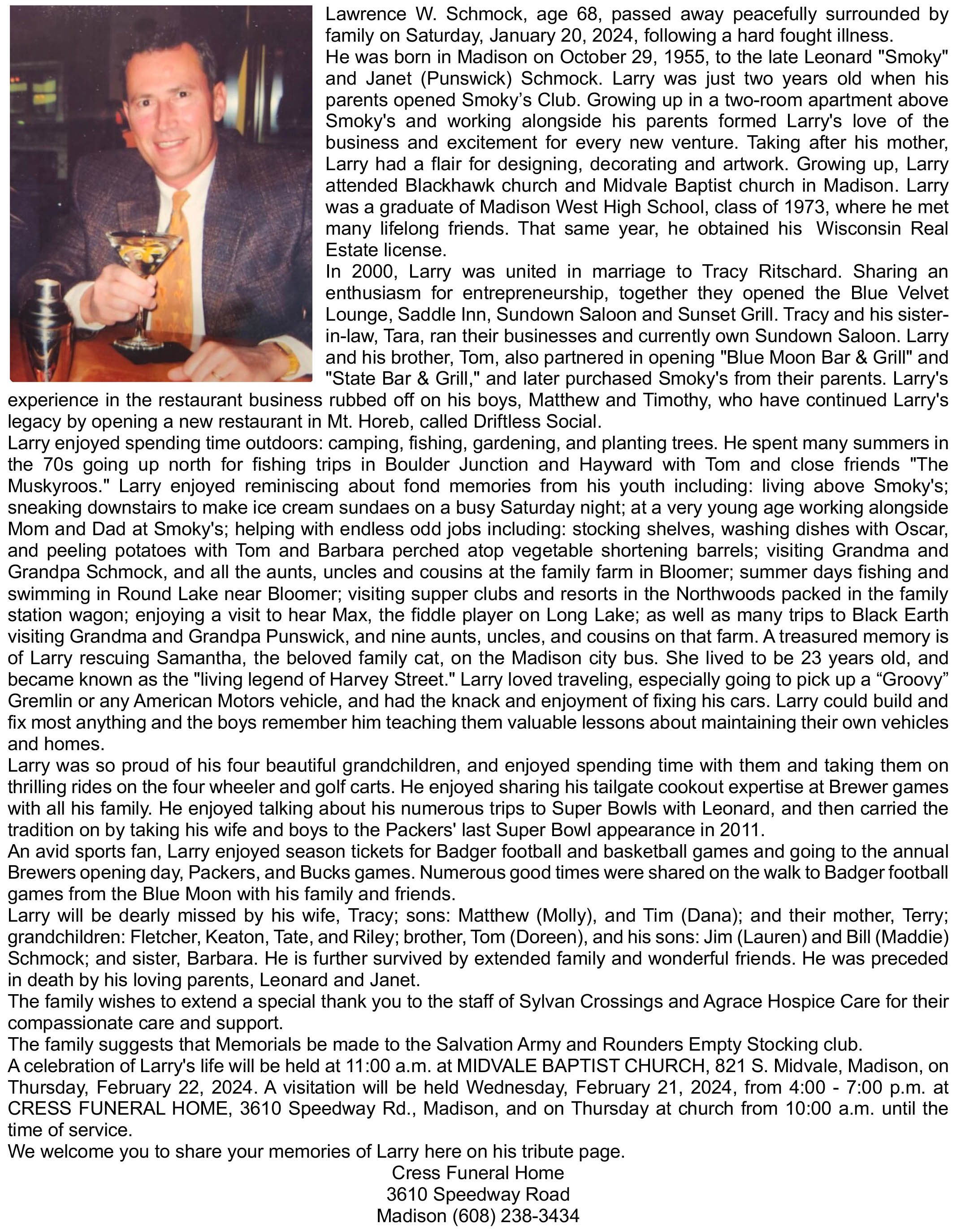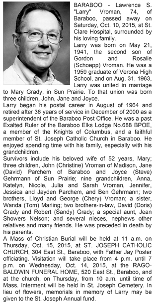 Schmock, Lawrence Obit Cemetery