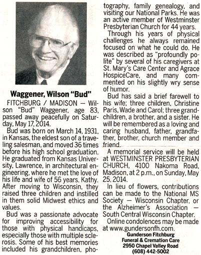 Waggener, Wilson “Bud” Obit