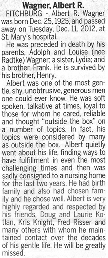 Wagner, Albert R. Obit Cemetery