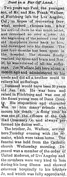 Wallace, Paul Z. Obit Cemetery