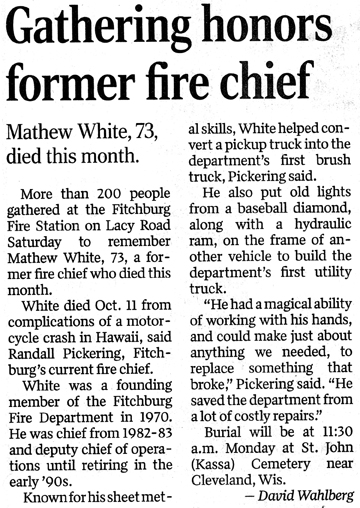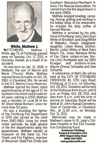 White, Mathew J. Obit 1 Obit 2