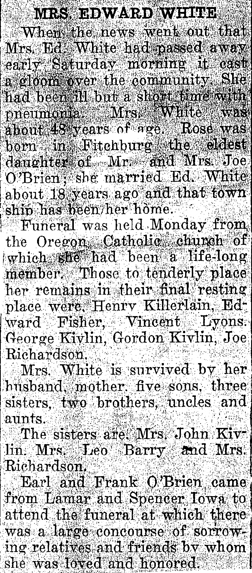 White, Rose Mary (nee O’Brien) Obit Cemetery