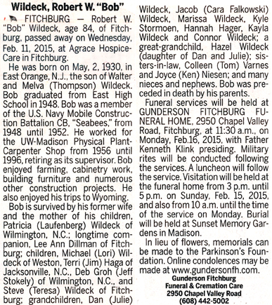 Wildeck, Robert W. “Bob” Obit Cemetery