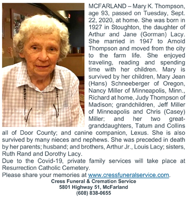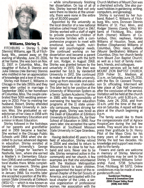 Williams, Mary L. Obit