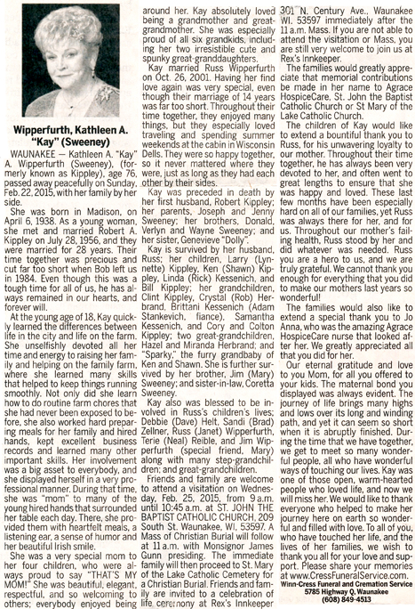 Wipperfurth, Kathleen A. “Kay” (nee Sweeney) Obit Cemetery