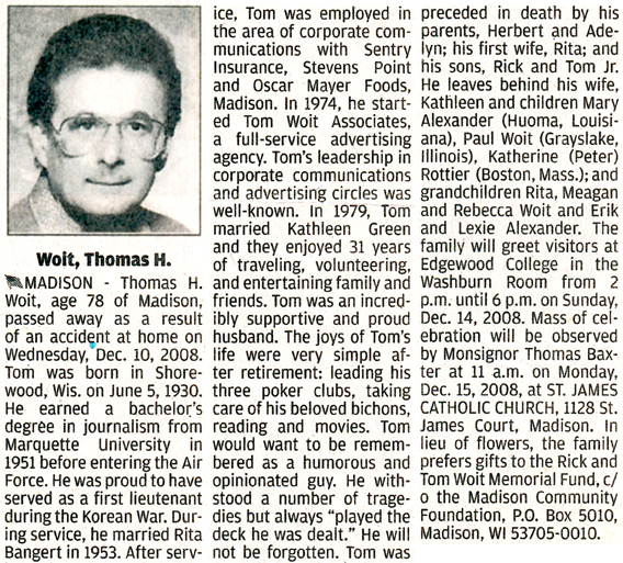 Woit, Thomas H. Obit Cemetery