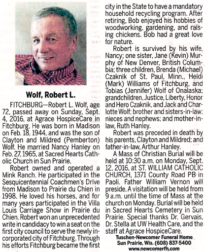 Wolf, Robert Lee Obit