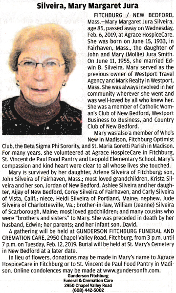 Silveira, Mary Margaret Jura Obit Cemetery