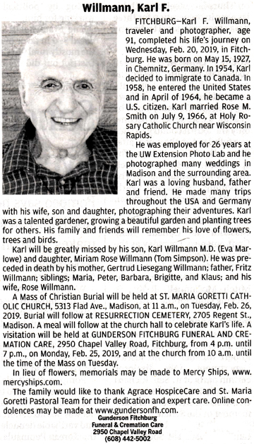 Willmann, Karl F. Obit Cemetery