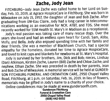 Zache, Jody Jean Obit