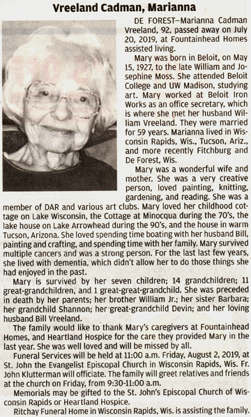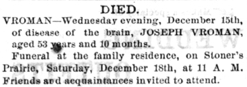 Vroman, Mary (nee Westrope) Obit Cemetery
