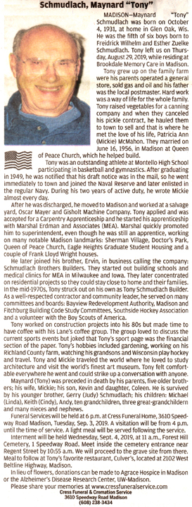 Schmudlach, Maynard “Tony” Obit
