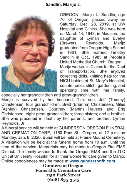 Sandlin, Marijo L. (nee Reynolds) Obit Cemetery