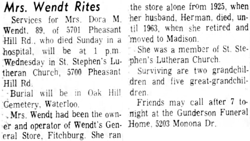Wendt, Dora M. (nee Geise) Obit 1 Obit 2 Cemetery