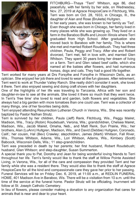 Whitson, Thaya “Terri” (nee Hultgren) Obit Cemetery