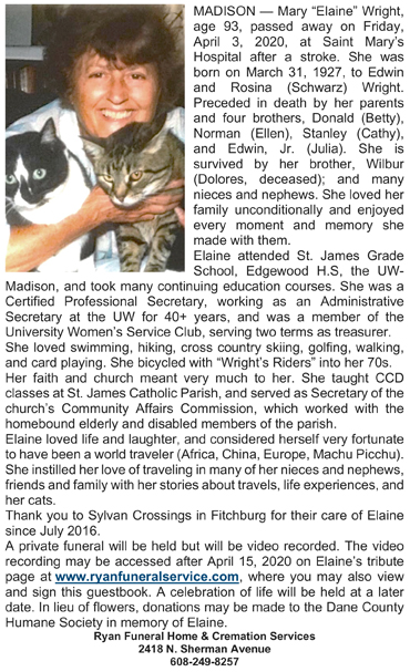 Wright, Mary “Elaine” Obit