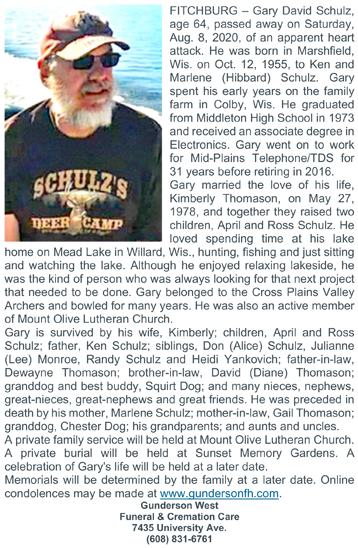 Schulz, Gary David Obit Cemetery