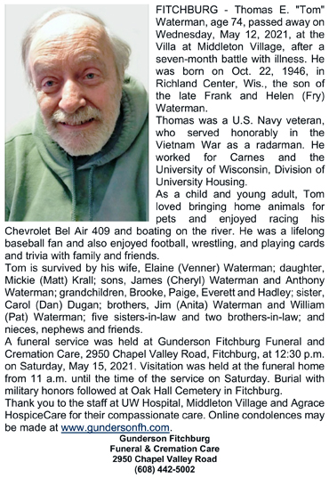 Waterman, Thomas E. “Tom” Obit Cemetery