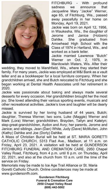 Werner, Jacqueline Mary “Jackie” (nee Dahlke) Obit Cemetery