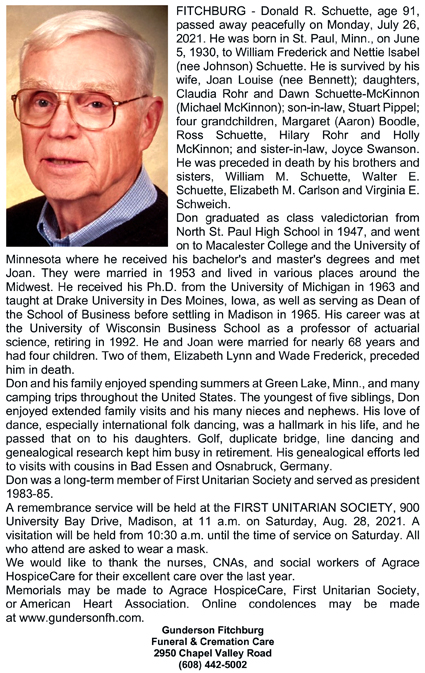 Schuette, Donald R. Obit