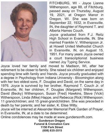 Witherspoon, Joyce Lianne nee Couch) Obit Cemetery