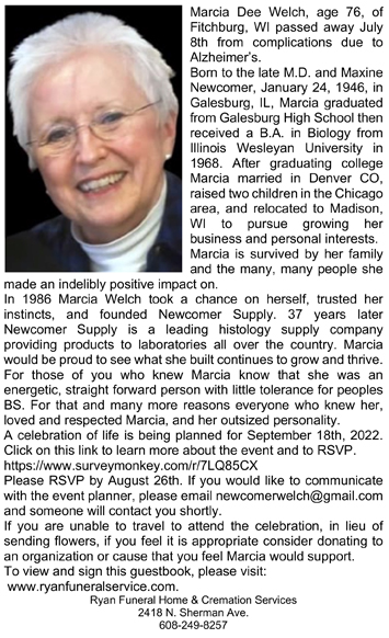 Welch, Marcia Dee (nee Newcomer) Obit