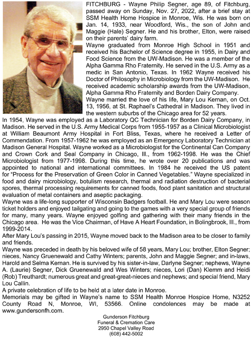 Segner, Wayne Philip Obit Cemetery