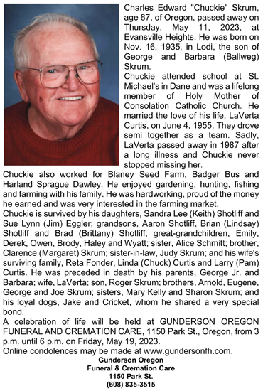 Skrum, Charles Edward “Chuckie” Obit Cemetery