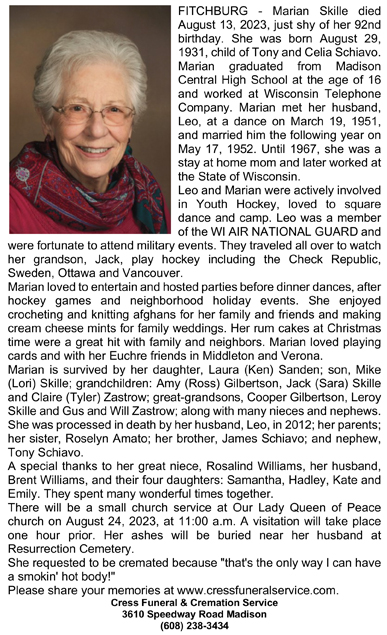 Skille, Marian (nee Schiavo) Obit Cemetery