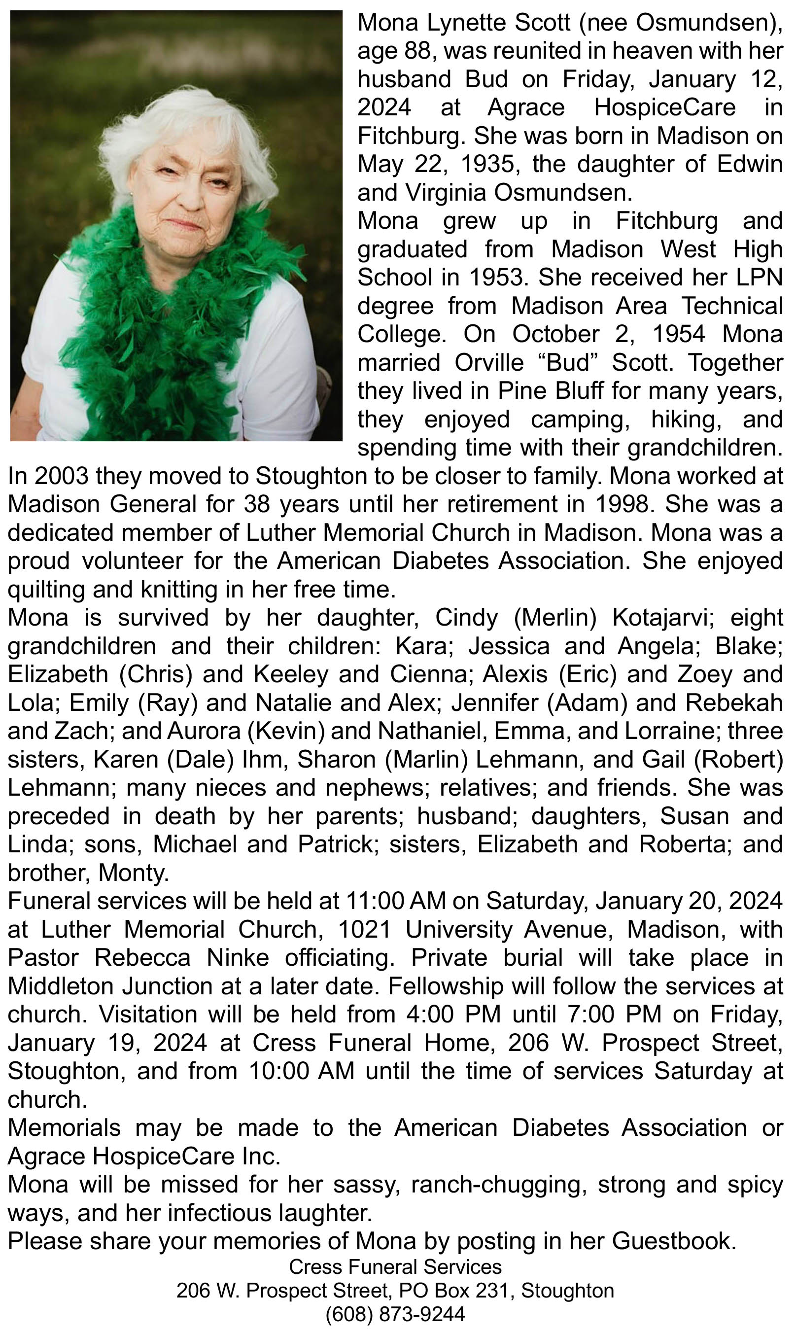 Scott, Mona Lynette (nee Osmundsen) Obit Cemetery