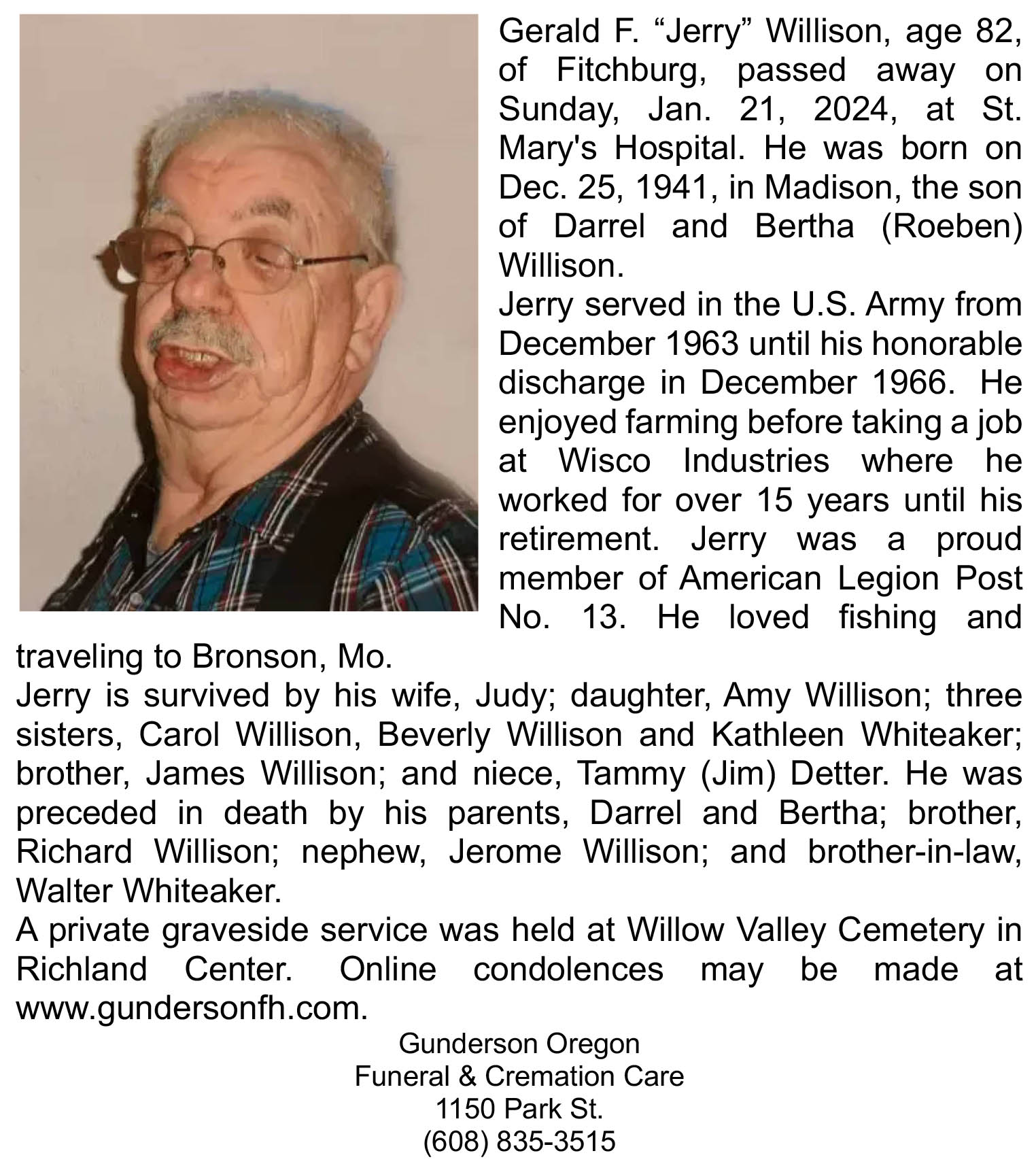 Willison, Gerald F. “Jerry” Obit Cemetery