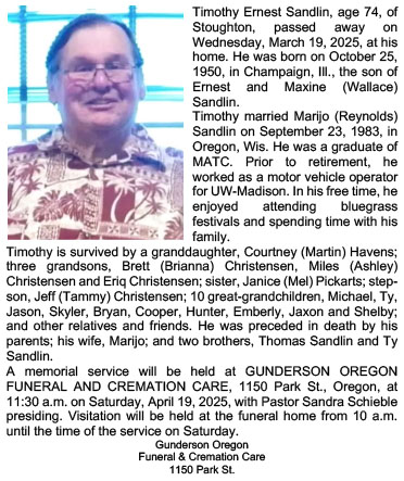Sandlin, Timothy Ernest Obit Cemetery