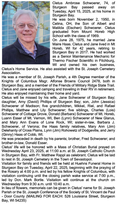 Schwoerer, Cletus A. Obit Cemetery
