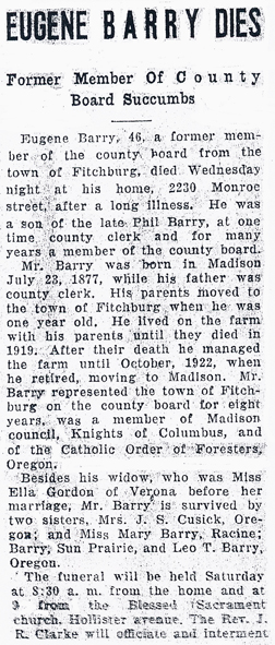 ![]() 1913-1921 Eugene Barry 1877 – 1924 Obit Cemetery |